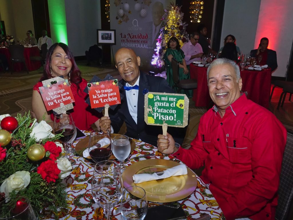 Con el concepto “Acroarte en Navidad Mortal”, los acroartistas se reunieron en el gran salón del Hotel Real Intercontinental donde reinó su presencia a través de imágenes y de frases icónicas que se han inmortalizado a través de los merengues del Caballo Mayor, como “Oye que rico mami”, “El vecino está borracho”, “Vecina llegó el cuabero” y “La Navidad está moooortall”.